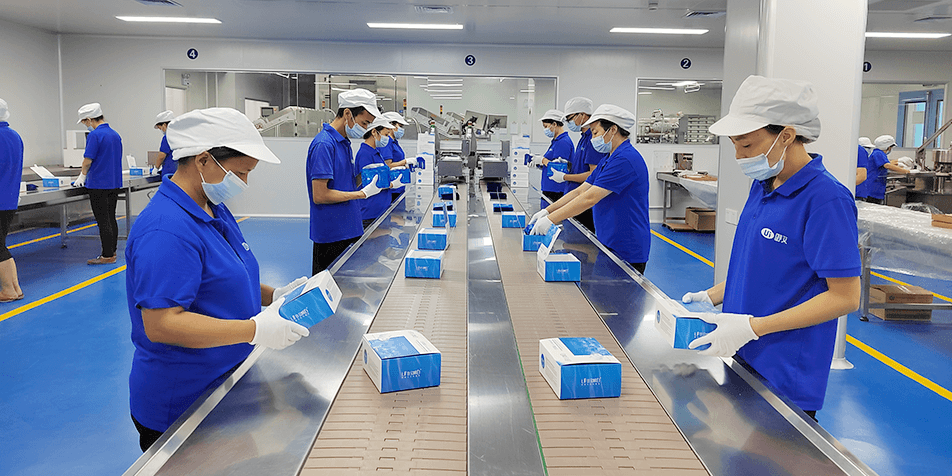 日產量 20W 對,獨立的凍干粉無菌車間內配備完善的冷凍干燥機,自動洗瓶滅菌機、自動灌裝機、自動壓蓋封口機、 自動貼標機等自動化生產設備,自動一體化生產。